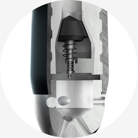 Конструкция клапана не содержит стальных элементов, что позволяет разбуривать его долотами PDC. По требованию Заказчика может быть установлено два клапана при наличии АВПД.